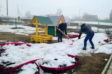 Кидаем снег на территории школы-детского сада. 31.03.2026