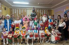 Сказочно украшенный музыкальный зал ,сверкающие огоньки гирлянд, нарядная елка ,увлекательные танцы и хороводы , стихотворения , веселые игры подарили праздничное новогоднее настроение ребятам и их родителям .
