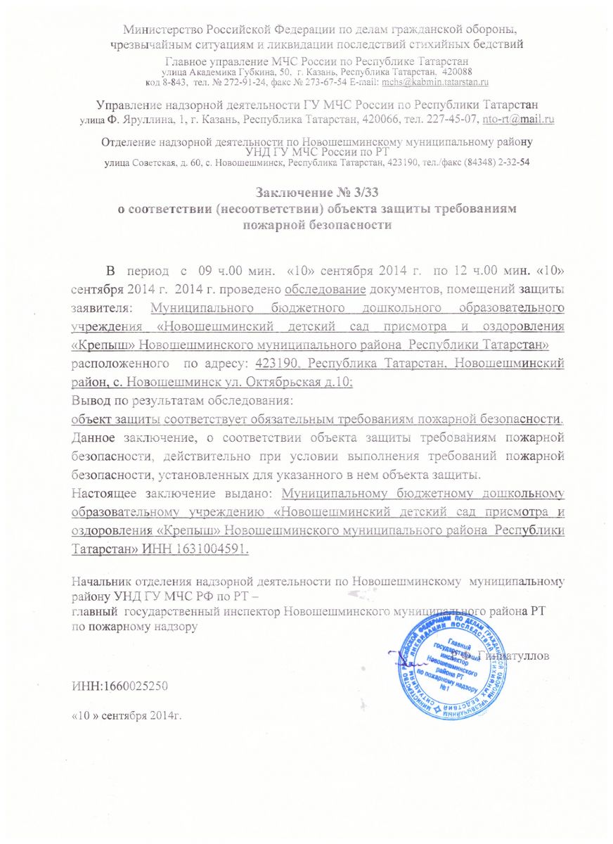 Залючение по пожарной безопасности