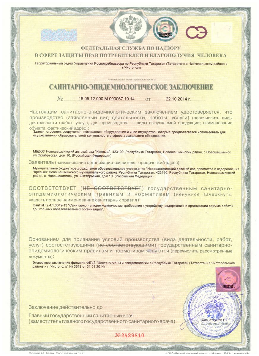 Санитарно-эпидемиологическое заключение