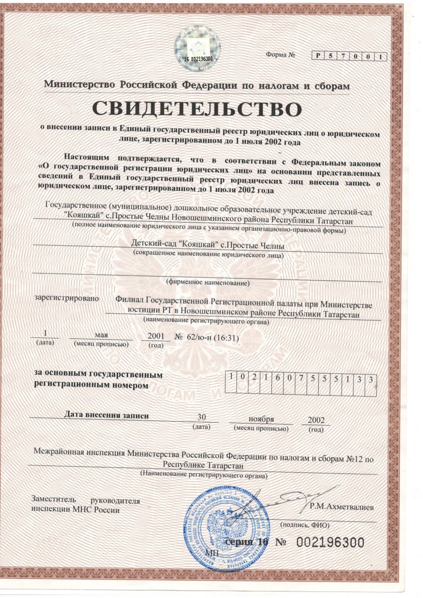 Свидетельство о внесении записи в единый государственный реестр.