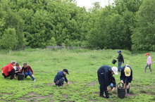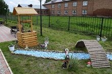 Трудовой лагерь плодотворно трудится на пришкольном участке. Уже почти полностью оформлен живописный декоративный уголок, в который очень гармонично вписались подаренные В.С. Курбатовой школе садовые гипсовые фигуры утки и аиста.