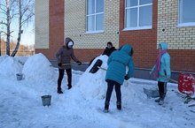 Сегодня ученики вместе с классными руководителями приступили к постройке снежных фигур к Новому году.