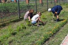 На пришкольном участке продолжаются работы: прополка гряд, поливка цветников, овощей. Осенью должны получить неплохой урожай.