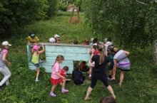 10 июня в нашем лагере прошел «День юмора», были проведены шуточные эстафеты, ДВВ – (день веселых вопросов) и все дети смотрели мультсериал – «Маша и медведь».