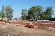 На глазах растёт здание нашей новой школы. Строители с утра до вечера, не покладая рук, работают на строительстве.