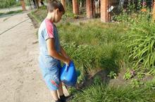 Несмотря на жаркое лето, ученики стараются работать на цветниках, чтобы цветы вокруг школы не только радовали, но и украшали фасад нашей школы.