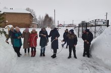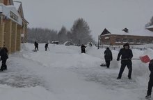 Школьники и сотрудники школы очистили снег на школьной территории.