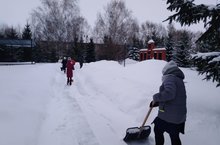 Волонтеры и Юнармейцы расчистили снег у памятника 03.03.2021