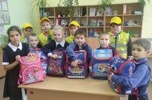 Члены отряда ЮИД провели проверку светоотражающих элементов на рюкзаках учащихся начальных классов.