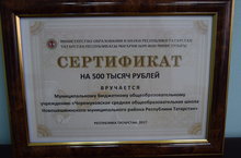 Вчера состоялось награждение по итогам конкурса по подготовке школ к новому учебному году. Наша школа в номинации сельских школ заняла первое место и награждена сертификатом на сумму 500 тысяч рублей.