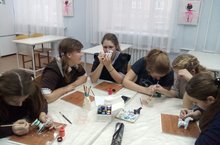 Продолжается работа предметных кружков и ребята с интересом расписывают дымковские игрушки.