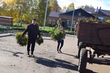 Сегодня в нашей школе прошла уборка территории. Весь коллектив принял активное участие.
