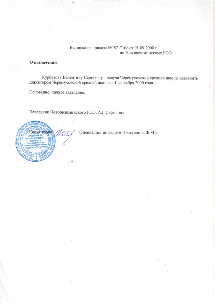 Решение учредителя о назначении руководителя МБОУ Черемуховская СОШ
