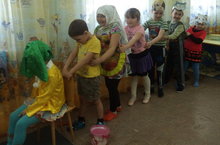 Ученики вместе с учителем татарского языка общались с ребятами детского сада "Солнышко" на втором государственном языке (татарском). Учитель задавала вопросы, а ребята смело и активно отвечали на татарском языке, а так же немного поиграли. Педагогу татарского языка понравилось произношение и желание детей разговаривать на втором языке.