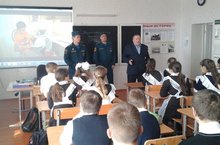 Урок носил практическую направленность на отработку действий обучающихся при пожаре, наводнении, террористическом акте, землетрясении, чрезвычайных ситуаций техногенного или природного характера. Основной целью проведения открытого урока являлось обучение учащихся правилам безопасного поведения в городской и природной среде в летний период, в том числе во время нахождения в детских оздоровительных и пришкольных лагерях. При этом особое внимание было уделено вопросам подготовки учащихся к действиям в случае возникновения или угрозы возникновения природных чрезвычайных ситуаций, пожаров, а также правилам безопасного поведения на воде. Также 30 апреля пожарная охрана России отмечает свой профессиональный праздник – это одна из самых жизненно необходимых служб быстрого реагирования. В связи с чем, учащимся был показан видеоролик о работе пожарных и учреждениях, занимающихся подготовкой кадров для службы в МЧС России, а Запека Я.М. наглядно продемонстрировал как одевается пожарный при выезде на пожар.