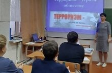 В нашей школе теме терроризма была посвящена беседа с учащимися 8 класса. Классный руководитель Немцова С. А. организовала показ видеоролика " Терроризм - угроза общества", где ребята вспомнили правила поведения при чрезвычайных ситуациях, как себя вести в экстренных случаях. Ученики получили памятки о поведении в ЧС. В школьной библиотеке есть уголок, посвящённый этой злободневной теме.
