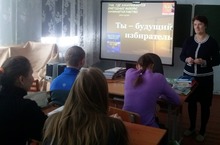 19 февраля 2014 года в 10 классе прошел воспитательный час «Ты – будущий избиратель». Классный руководитель Патрикеева А.П. познакомила учащихся с историей выборов, развитием избирательной системы России, рассказала о том, что день молодого избирателя проводится в субъектах Российской Федерации каждое третье воскресенье февраля. Задача проведения мероприятий в школе, посвященных дню молодого избирателя, привить вкус молодому поколению к участию в политике в рамках демократического процесса. В конце занятия учащиеся ответили на вопросы теста «Я – избиратель».