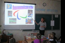 В школе прошли классные часы-"Паралимпийский урок". Учителя рассказали детям об паралимпийских играх, эмблеме и девизе игр, об истории возникновения.