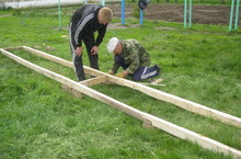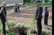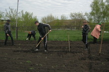 Учащиеся делали грядки и сажали лук на пришкольном участке.