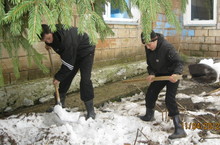 НАЧАЛСЯ ДВУХМЕСЯЧНИК ПО БЛАГОУСТРОЙСТВУ СЕЛА И ТЕРРИТОРИЙ УЧРЕЖДЕНИЙ. УЧАЩИЕСЯ И РАБОТНИКИ ШКОЛЫ УБИРАЛИ МУСОР НА ТЕРРИТОРИИ ШКОЛЫ, РАССКИДЫВАЛИ СНЕГ.