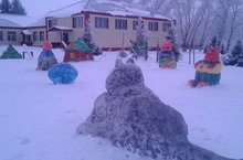 На школьной территории силами учащихся и работников школы были построены и оформлены снежные фигурки по мотивам сказки "Три поросенка".