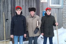 "Юнармейцы" школы оказали посильную помощь ветерану ВОВ нашего села Быкову Г.И. Они очистили около его двора, помогли по хозяйству.