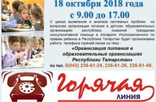 В соответствии с планом работы, с целью выявления и анализа системных проблем по вопросам организации питания в детских образовательных организациях республики, оказания гражданам консультативной помощи 18 октября 2018 года с 9.00 до 17.00 в Аппарате Уполномоченного по правам ребенка в Республике Татарстан будет организована работа телефона горячей линии на тему «Организация питания в образовательных организациях Республики Татарстан» по телефонам 8(843) 236-61-24, 236-61-26, 236-61-49.