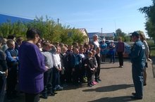 В рамках месячника безопасности в нашей школе сотрудниками МЧС была проведена учебная эвакуация из здания школы, а также беседа с учащимися о противопожарной безопасности.