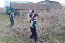 Помощь в уборке сухой травы племяннице героя Соколовой Марии Ивановне. Силами учеников 3 класса была убрана большая территория. 08.05.2018