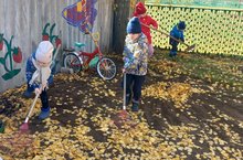 Осень; листья шелестят, дождь, ветер; когда листья с деревьев падают. Дети оценивают чистоту участка, определяют самые трудные места для уборки. Рассматривание своего участка на территории детского сада.