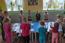 Формировать навыки коллективного труда: трудиться рядом, не мешая друг другу, в общем ритме.