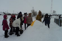 Ребята с большим удовольствием закончили строительство снежного городка, а точнее раскрасили фигуры. На детской площадке в Новом году будут встречать ребят сказочные герои.