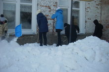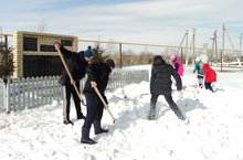 Сегодня в нашей школе прошел средник. Учащиеся и коллектив приступили к очистке территории школы от снега.