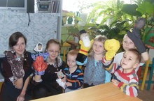 Сегодня ученицы 11 класса - Зорина Елена и Нестерова Светлана с преподавателем технологии Глушковой Е. А. посетили детский сад "Колосок". Целью посещения было показать детям дошкольного возраста сказку "Колобок". Куклы для кульного театра были изготовлены ученицами 11 класса. Дети с удовольствием наблюдали за действиями кукол и с интересом слушали речь диктора. После показа сказки дети имели возможность поиграть с куклами, примерить их на свои руки. В благодарность за показ кукольного театра дошколята рассказали стихотворения о детском саде.