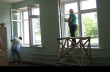 Ремонтные работы в школе идут полным ходом.Радует глаз аккуратно покрашенные стены,окна,двери.