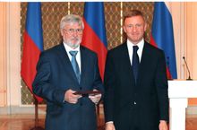 На снимке наш земляк, выпускник нашей школы Лазарев Виктор Андреевич - доктор педагогических наук на церемонии награждения лауреатов правительственной премии 2012 в области образования с министром образования Российской Федерации Дмитрием Ливановым.