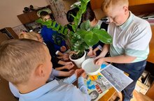 Учащиеся школы в память жертв Беслана, которые, находясь в заточении, не могли выпить и капли воды, приняли участие во Всероссийской акции «Капля жизни». Ребята набрали в ладони воду и полили растения, символически поделившись водой с теми, кого уже с нами нет.