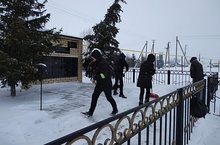 Учащиеся школы очистили территорию памятника от снега.