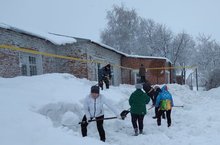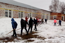 Сегодня прошел очередной субботник по очистке от снега территории школы.