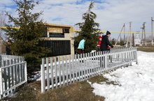 Уборка снега у памятника. 06.04.2019