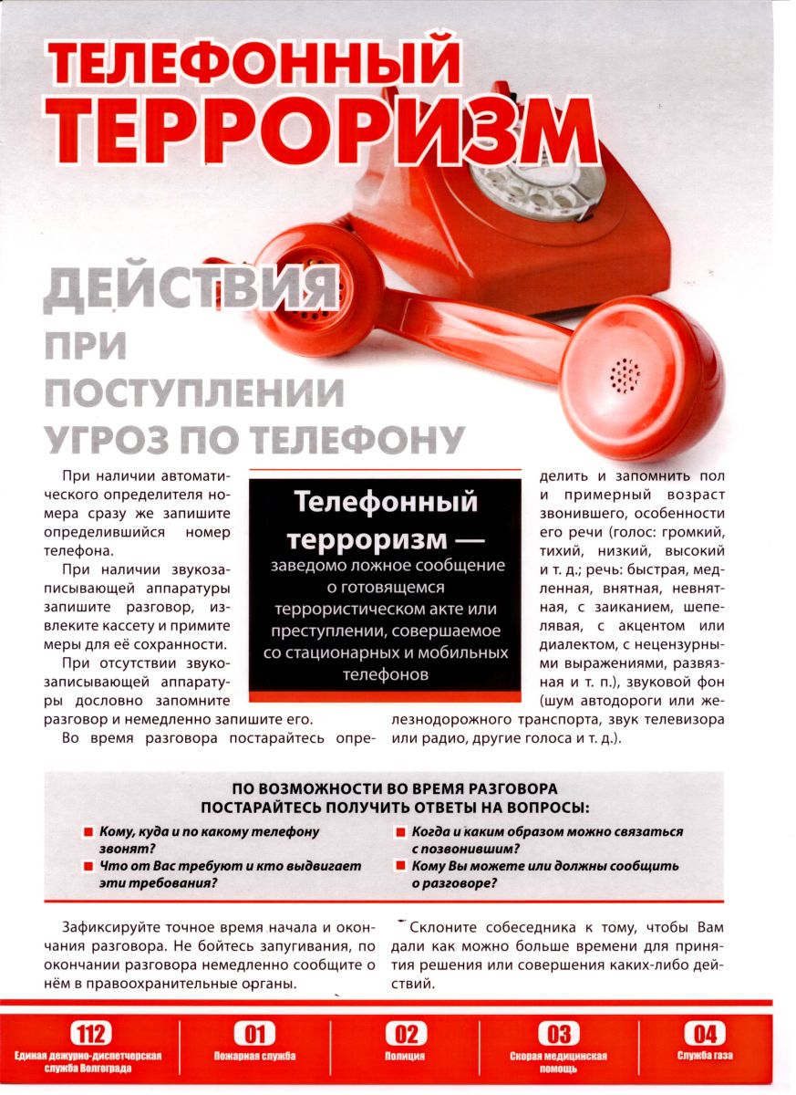 Действия при поступлении угроз по телефону