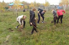 Учащиеся 8-9 класса посадили 40 саженцев сосны.