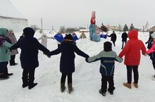 На площади районного Дома культуры с.Новошешминск, состоялось народное гуляние "Собирайся. народ, Масленица идет!" Милютина Полина и Хорькова Вера приняли участие в конкурсе "Символ Масленицы".