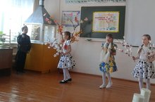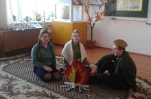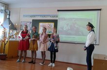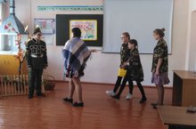 2 и 4 класс приняли участие в конкурсе инсценированной песни военных лет. Они исполнили песню "Катюша". Заняли 2 место