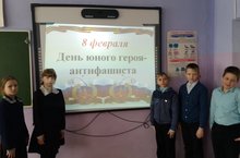 В школе были проведены классные часы,посвящённые юным героям. Цель: познакомить детей с юными героями-антифашистами, пионерами -героями Великой Отечественной войны, погибших в борьбе за Мир; воспитывать чувства патриотизма, любовь к Родине, сострадание к людям.