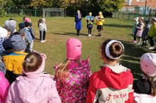 В канун празднования Международного дня пожилых людей отряд ЮИД "Светофор" начальной школы поздравили пожилых участников дорожного движения. Напомнили про правила дорожного движения, вручили поздравительные открытки и пожелали "Безопасных дорог".