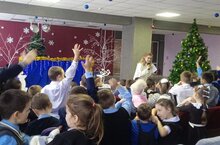 Учащиеся начальной школы посетили районный дом культуры, где сотрудники подготовили интересный и поучительный кукольный театр. Ведущие провели с детьми весёлый и познавательный интерактив и викторину. А в конце ребят ожидал сюрприз- Ростовые куклы, которые посетили праздник и вместе с детьми пустились в зажигательный Новогодний флешмоб. В конце каждый из детей получил сладкий подарок. Праздник удался на славу. Благодарим сотрудников Районного дома культуры за такой замечательный праздник.