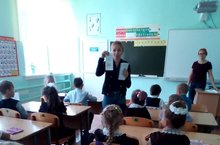В рамках республиканского профилактического мероприятия «Внимание – дети!» сегодня в нашей школе волотеры РДШ с методистом районного отдела образования по воспитательной работе Яновой Е.П. провели акцию «Помоги первокласснику безопасно перейти дорогу в школу». Цель акции – помочь первоклассникам адаптироваться к школьной жизни и закрепить их навыки безопасного поведения на дорогах. Евгения Петровна провела интересную профилактическую беседу с учащимися и вручила детям световозвращающие фликеры, подарки.