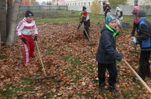 Сегодня учащиеся очистили территорию школы от сухой листвы и мусора.